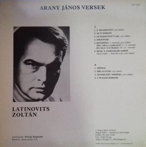 Latinovits Zoltán, Arany János – Arany János Versek Lp (Vg+/Vg+)