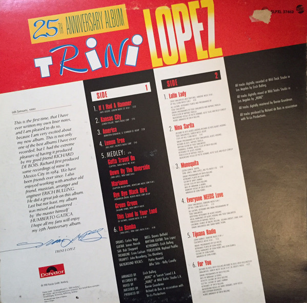 Trini Lopez – 25th Anniversary Album Lp (Vg/vg)