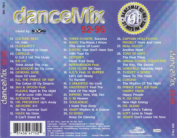 Various – DanceMix 92-96 Cd (Ex/Ex)